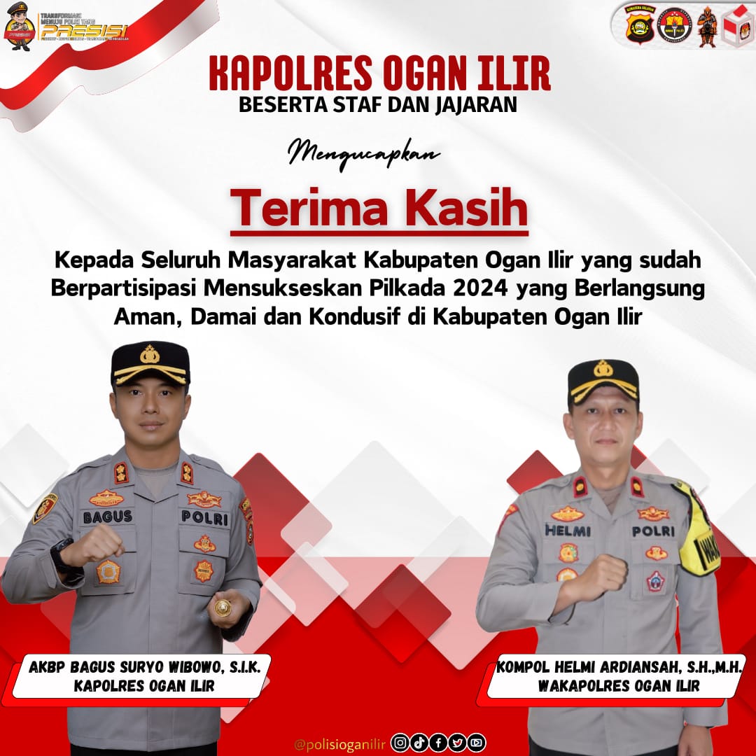 Kapolres Ogan Ilir Sampaikan Apresiasi dan Ucapan Terima Kasih atas Suksesnya Pilkada Serentak 2024