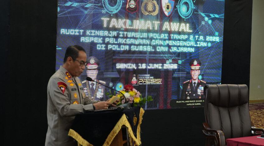 Palembang,– Policeline.my.id Kapolda Sumsel, Irjen Pol. Andi Rian R Djajadi SIK,MH ., secara resmi membuka Taklimat Awal Audit Kinerja Itwasum Polri Tahap II yang berfokus pada aspek pelaksanaan dan pengendalian. Kegiatan ini berlangsung di Aditorium lantai 7 Gedung Utama Presisi Polda Sumsel Senin 16/6/2025 pagi